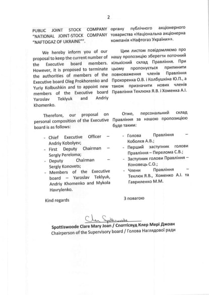 "Этим письмом сообщаем о нашем предложении сохранить текущий количественный состав правления", - отмечается в документе. В то же время было предложено прекратить полномочия членов правления Олега Прохоренко и Юрия Колбушкина.