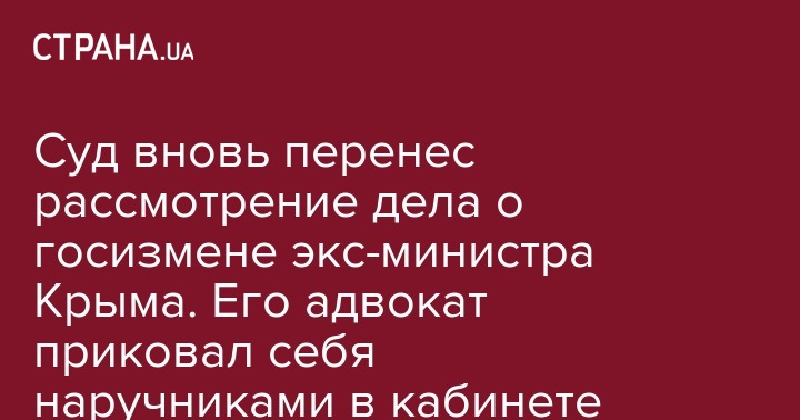 Суд вновь перенес рассмотрение дела о госизмене экс-министра Крыма. Его адвокат приковал себя наручниками в кабинете судьи