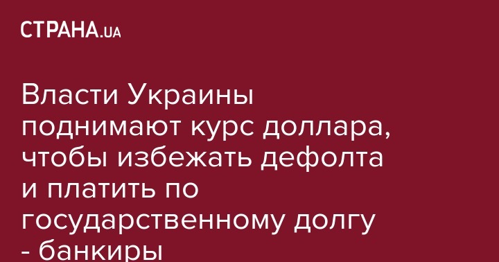 Власти Украины поднимают курс доллара, чтобы избежать дефолта и платить по государственному долгу - банкиры