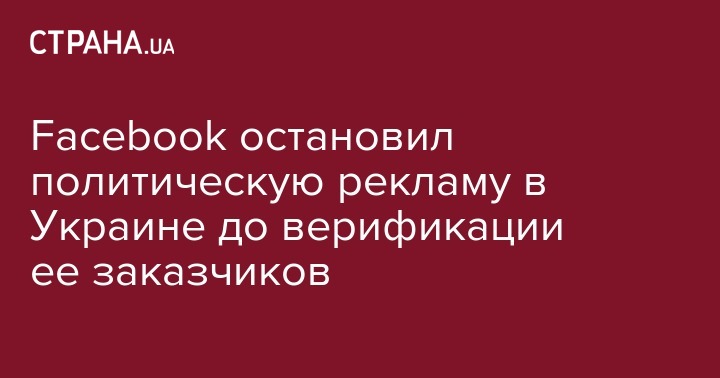 Компания Facebook, обещавшая ужесточить правила размещения политической рекламы, сегодня остановила ее в своей социальной сети в Украине до верификации заказчиков. Об этом сообщают Украинские новости.