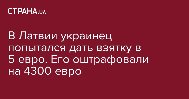 В Латвии украинца оштрафовали на 4300 евро за попытку дать взятку при пересечении границы  на лавтвийском пограничном пункте "Патерниеки". Об этом пишет "Капитал".