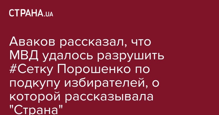 Аваков рассказал, что МВД удалось разрушить #Сетку Порошенко по подкупу избирателей, о которой рассказывала "Страна"