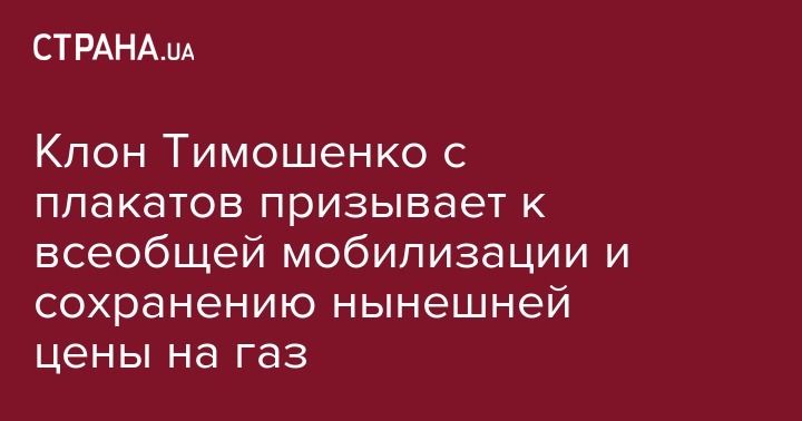 Клон Тимошенко с плакатов призывает к всеобщей мобилизации и сохранению нынешней цены на газ