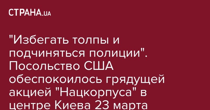 "Избегать толпы и подчиняться полиции". Посольство США обеспокоилось грядущей акцией "Нацкорпуса" в центре Киева 23 марта
