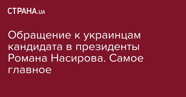 Обращение к украинцам кандидата в президенты Романа Насирова. Самое главное