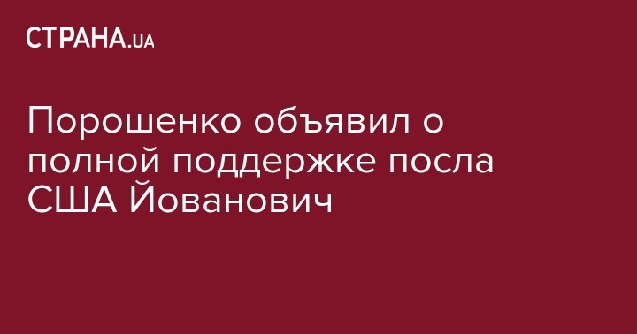 Посол США в Украине Мари Йованович, как представитель США и президента Дональда Трампа, имеет полную личную поддержку президента Петра Порошенко. Об этом заявил сам президент сегодня, 22 марта, по случаю 27-й годовщины создания СБУ.