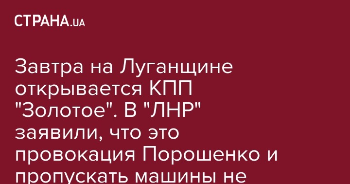 Завтра на Луганщине открывается КПП "Золотое". В "ЛНР" заявили, что это провокация Порошенко и пропускать машины не будут