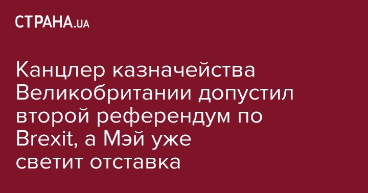 Канцлер казначейства Великобритании Филипп Хэммонд допустил проведение второго референдума по выходу из ЕС (Brexit). В интервью, которое вышло в эфир телеканала Sky News, он сказал, что эта мысль "заслуживает рассмотрения".