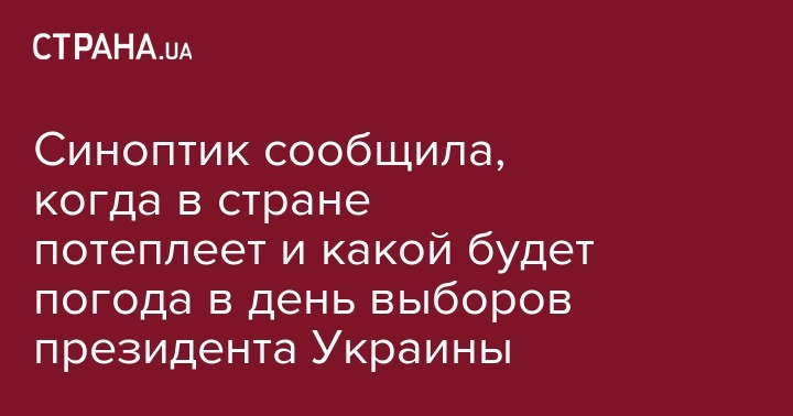 Также Диденко сообщила, что в день выборов президента Украины и накануне будет хорошая погода.