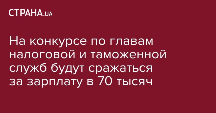 Реальная зарплата будущих руководителей государственных налоговой и таможенной служб составит около 60-70 тысяч гривен, включая оклад в 24 тысячи гривен. Об этом сообщает "Интерфакс-Украина" со ссылкой на источник в Министерстве финансов.