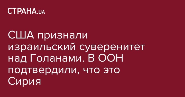 США признали израильский суверенитет над Голанами. В ООН подтвердили, что это Сирия