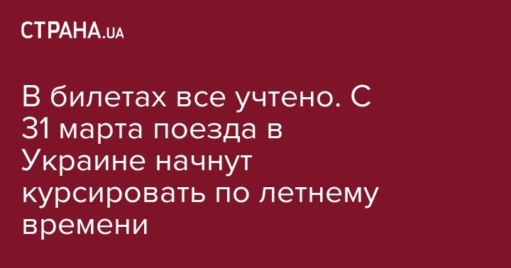 "В билетах на поезда формирования "Укрзализныци" указан уже откорректированный график движения пассажирских и пригородных поездов. Поэтому путешественникам, которые запланировали поездки на этот выходной день, а также тем, кто будет встречать на вокзале друзей или гостей в понедельник 1 апреля, стоит быть внимательными и вовремя привести в соответствие время на своих часах", - уточнили в "Укрзализныце".