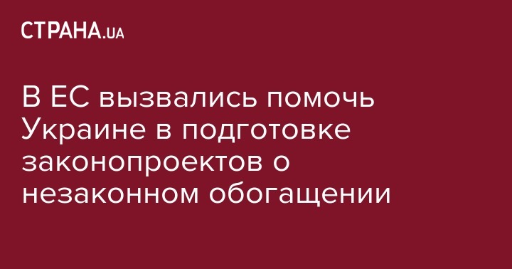 Европейский Союз предложил комитету Верховной Рады по вопросам законодательного обеспечения правоохранительной деятельности экспертную помощь для подготовки законопроектов о незаконном обогащении. Об этом сообщает "Интерфакс-Украина".