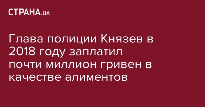 Глава Нацполиции Сергей Князев выплатил 926 333 гривен алиментов в 2018 году. Об этом свидетельствует его электронная декларация за прошлый год.