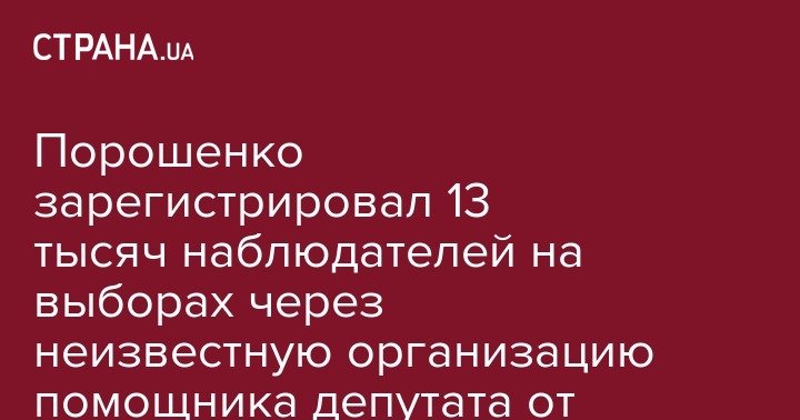 Порошенко зарегистрировал 13 тысяч наблюдателей на выборах через неизвестную организацию помощника депутата от БПП