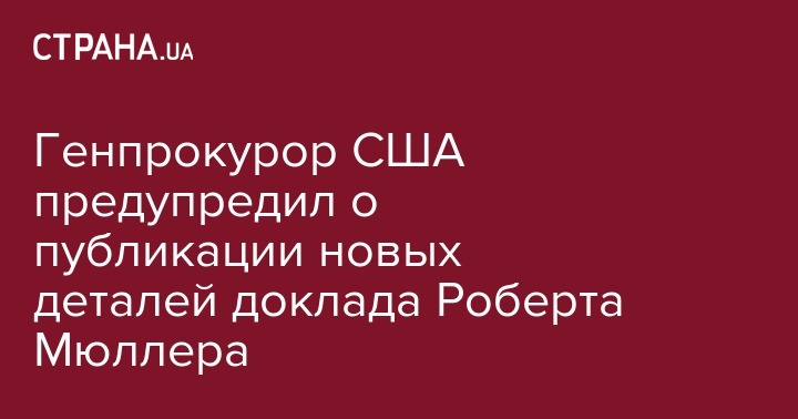 Генпрокурор США Уильям Барр заявил, что новые детали доклада специального прокурора Роберта Мюллера по Рашагейту, вероятно, представят уже через несколько недель. Об этом сообщает Reuters.
