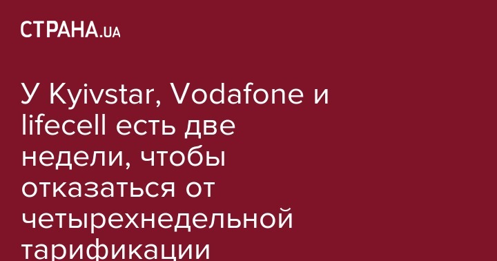 Операторы мобильной связи Украины Kyivstar, Vodafone и lifecell должны в течение двух недель пересмотреть тарифные предложения и отказаться от практики брать с людей плату каждые 4 недели, пишет Ubr.ua.