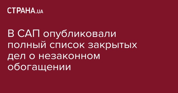 В САП опубликовали полный список закрытых дел о незаконном обогащении