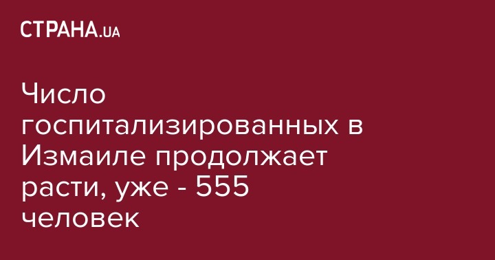 Об этом сообщил мэр Измаила Андрей Абрамченко на своей странице в Facebook. По его словам, из 555 госпитализированных - 312 дети. Пострадавшие жалуются на тошноту, расстройство стула и высокую температуру. При этом часть обратились в медучреждения самостоятельно, других привезли на "скорых".