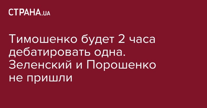 Тимошенко будет 2 часа дебатировать одна. Зеленский и Порошенко не пришли