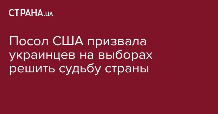 Посол США призвала украинцев на выборах решить судьбу страны