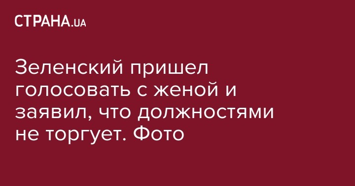 Зеленский пришел голосовать с женой и заявил, что должностями не торгует. Фото