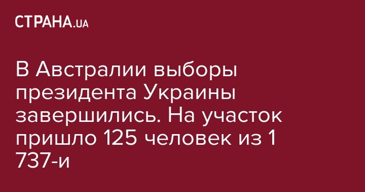 В столице Австралии Канберра завершилось голосование на выборах президента Украины. В Центральной избирательной комиссии сообщили, что всего там проголосовали 125 человек из 1 737 включенных в список избирателей, передает "Интерфакс-Украина".