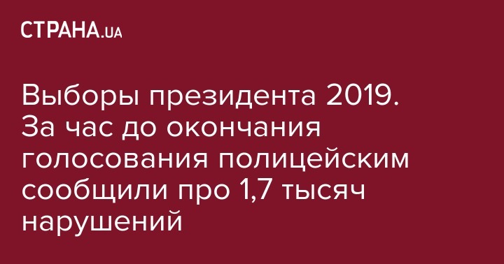 В воскресенье, 31 марта, по состоянию на 19:00 в Национальную полицию Украины поступило 1768 заявлений и сообщений о правонарушениях в ходе выборов президента страны. Об этом сообщает пресс-служба МВД Украины на странице в Facebook.
