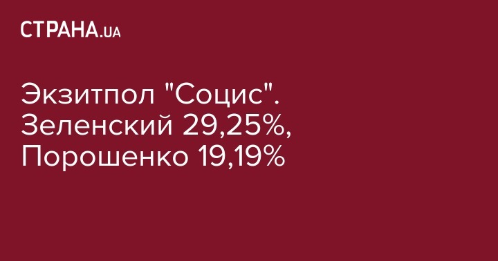 Экзитпол "Социс". Зеленский 29,25%, Порошенко 19,19%