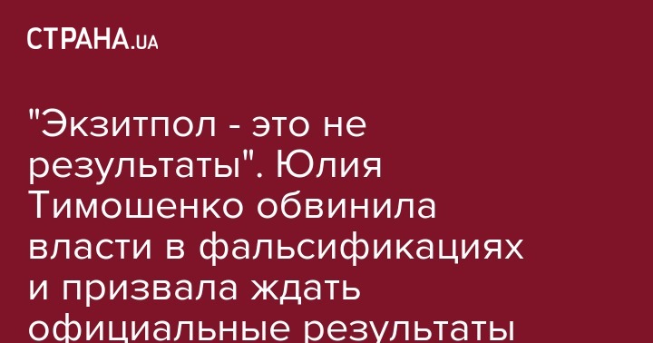 "Экзитпол - это не результаты". Юлия Тимошенко обвинила власти в фальсификациях и призвала ждать официальные результаты