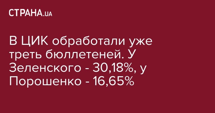 Вчера, 31 марта, в Украине завершился первый тур президентских выборов, и ЦИК по состоянию на 05.32 1 апреля уже обработал 30,52% протоколов. Лидеры избирательной гонки все те же.