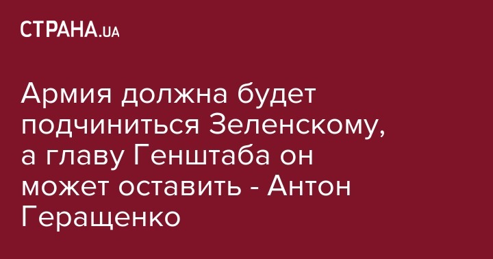 Армия должна будет подчиниться Зеленскому, а главу Генштаба он может оставить - Антон Геращенко