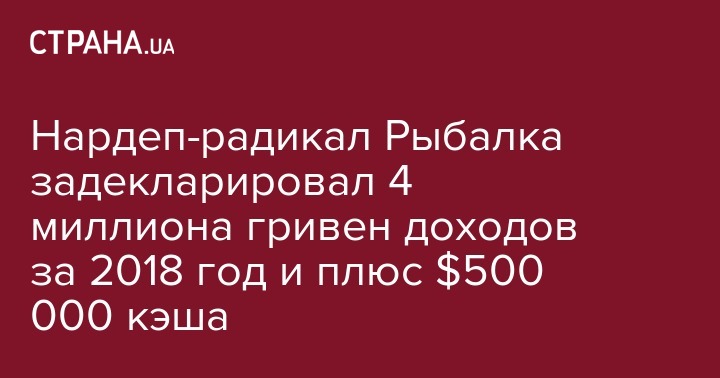 Нардем от Радикальной партии Ляшко Сергей Рыбалка в своей декларации за 2018 год зафиксировал 4 219,3 млн гривен доходов. Об этом свидетельствуют данные Единого государственного реестра деклараций лиц, уполномоченных на выполнение функций государства или местного самоуправления.