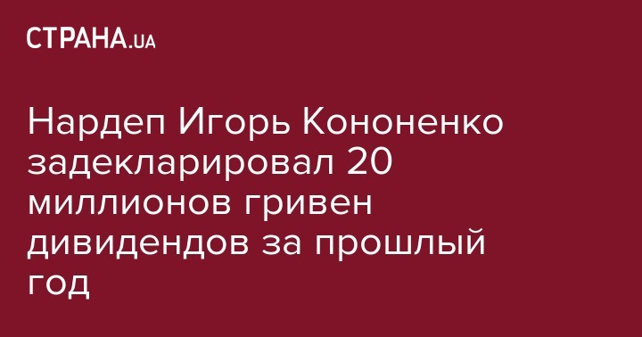 Нардеп Игорь Кононенко задекларировал 20 миллионов гривен дивидендов за прошлый год