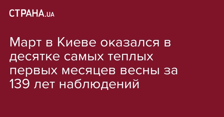 Март в Киеве в 2019 году вошел в десятку самых теплых за 139 лет метеорологических наблюдений. Об этом констатируют на сайте Центральной геофизической обсерватории им. Бориса Срезневского.