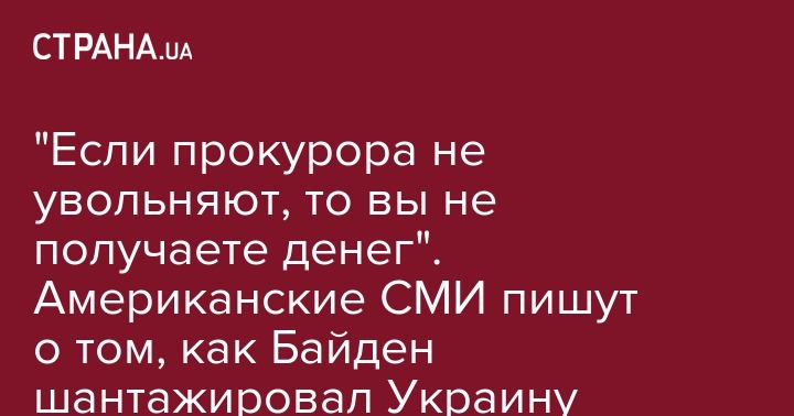 "Я сказал: "Вы не получите миллиард". Посмотрел на них и сказал: "Я уезжаю через шесть часов. Если прокурора не увольняют, то вы не получаете денег", — приводится в материале цитата Байдена с воспоминанием об ультиматуме президенту Украины Петру Порошенко.