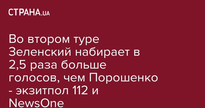 Во втором туре Зеленский набирает в 2,5 раза больше голосов, чем Порошенко - экзитпол 112 и NewsOne