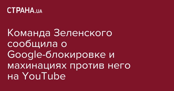 Команда Зеленского сообщила о Google-блокировке и махинациях против него на YouTube