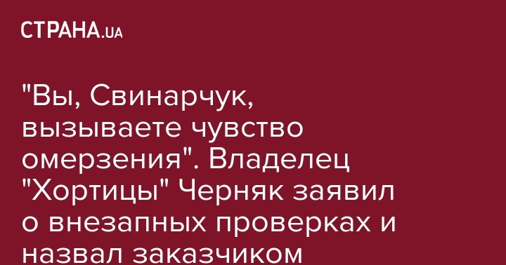 Бизнесмен заявил, что не собирается ни с кем "договариваться". "Официально заявляю, договариваться ни с кем не буду. Свинарчуку особый привет. Понимаю, кто заказчик этих проверок. Вы, Свинарчук, вызываете во мне чувство омерзения. Своей мерзкой рожей, своей ампутированной совестью. Своей тупой жадностью. И своей непроходимой тупостью. Вам мало просто воровать, вам еще нужно, чтобы все восхищались вашим воровским талантом. Но, знайте, вас ненавидят все, кто с вами не в доле и не в теме. А таких 99%. Из-за таких как вы люди уезжают миллионами. Из-за таких свинарчуков Украина во всем Мире стала синонимом коррупции", - написал Черняк.