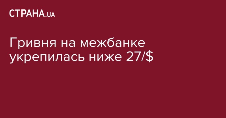 Гривня на межбанке укрепилась ниже 27/$