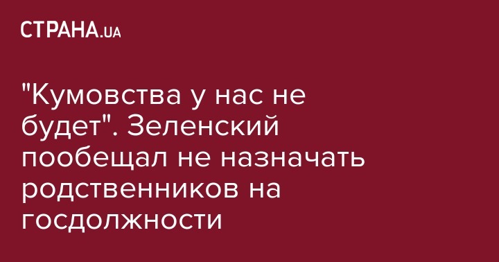 "Кумовства у нас не будет". Зеленский пообещал не назначать родственников на госдолжности