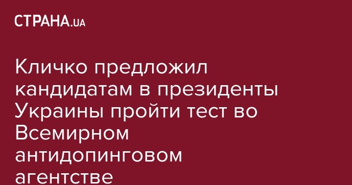 Украинский боксер, экс-чемпион мира Владимир Кличко выступил с предложением к кандидатам на пост президента Украины пройти тест во Всемирном антидопинговом агентстве (World Anti-Doping Agency, WADA). Об этом он заявил на своей страницке в Facebook.