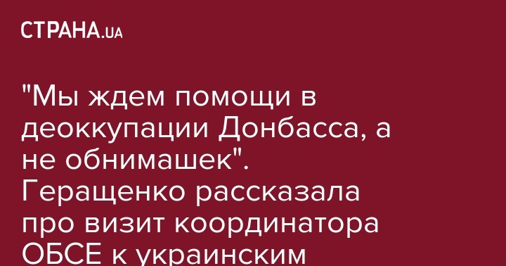 Кроме того, Геращенко заявила, что представитель ОБСЕ в Донецке "тепло обнимался с представителями оккупационной власти".