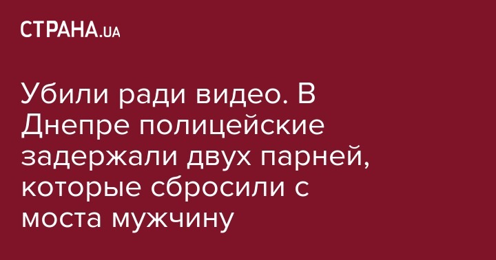 Убили ради видео. В Днепре полицейские задержали двух парней, которые сбросили с моста мужчину