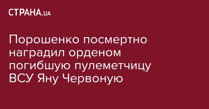 Президент Петр Порошенко своим указом посмертно наградил известного волонтера и военнослужащую 54-й ОМБр Яну Червоную, которая погибла 2 апреля в результате прямого попадания ПТУРа противника в блиндаж, орденом Богдана Хмельницкого ІІІ степени. Соответствующий документ опубликован на сайте главы государства