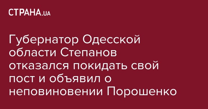 Губернатор Одесской области Максим Степанов, которого отстранил от должности президент Украины Петр Порошенко, отказывается покидать свой пост и назвал указ главы государства незаконным. Об этом Степанов заявил в ходе пресс-конференции 8 апреля, пишет "Таймер".