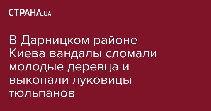 Неизвестные сломали молодые деревца и выкопали луковицы тюльпанов в сквере Трудовой Славы в Дарницком районе Киева. Об этом 8 апреля в Facebook пишет КП СЗН Дарницкого района Киева в Facebook.