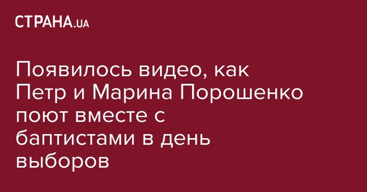В распоряжении "Страны" оказалось видео, на котором Марина Порошенко вместе с мужем, президентом Петром Порошенко, распевают баптистские псалмы во время визита в "Храм мира" 31 марта, где секретарь СНБО Александр Турчинов читал свою проповедь. Ролик опубликован на YouTube-канале Страна.ua.