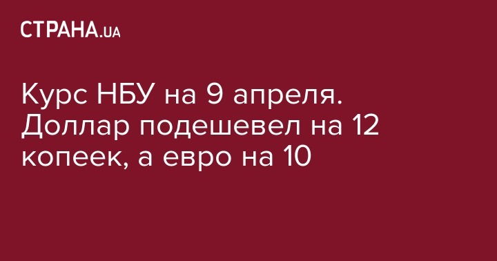 Курс НБУ на 9 апреля. Доллар подешевел на 12 копеек, а евро на 10