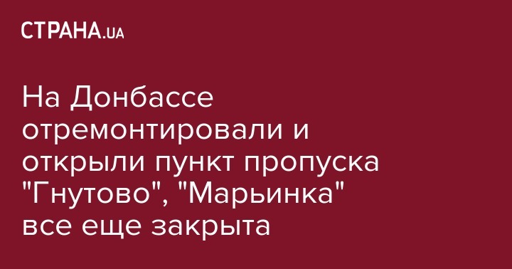 Пункт пропуска "Гнутово" на Донбассе, закрытый 5 апреля на реконструкцию, возобновил свою работу с 07:00 9 апреля. Об этом сообщает пресс-центр Государственной пограничной службы Украины